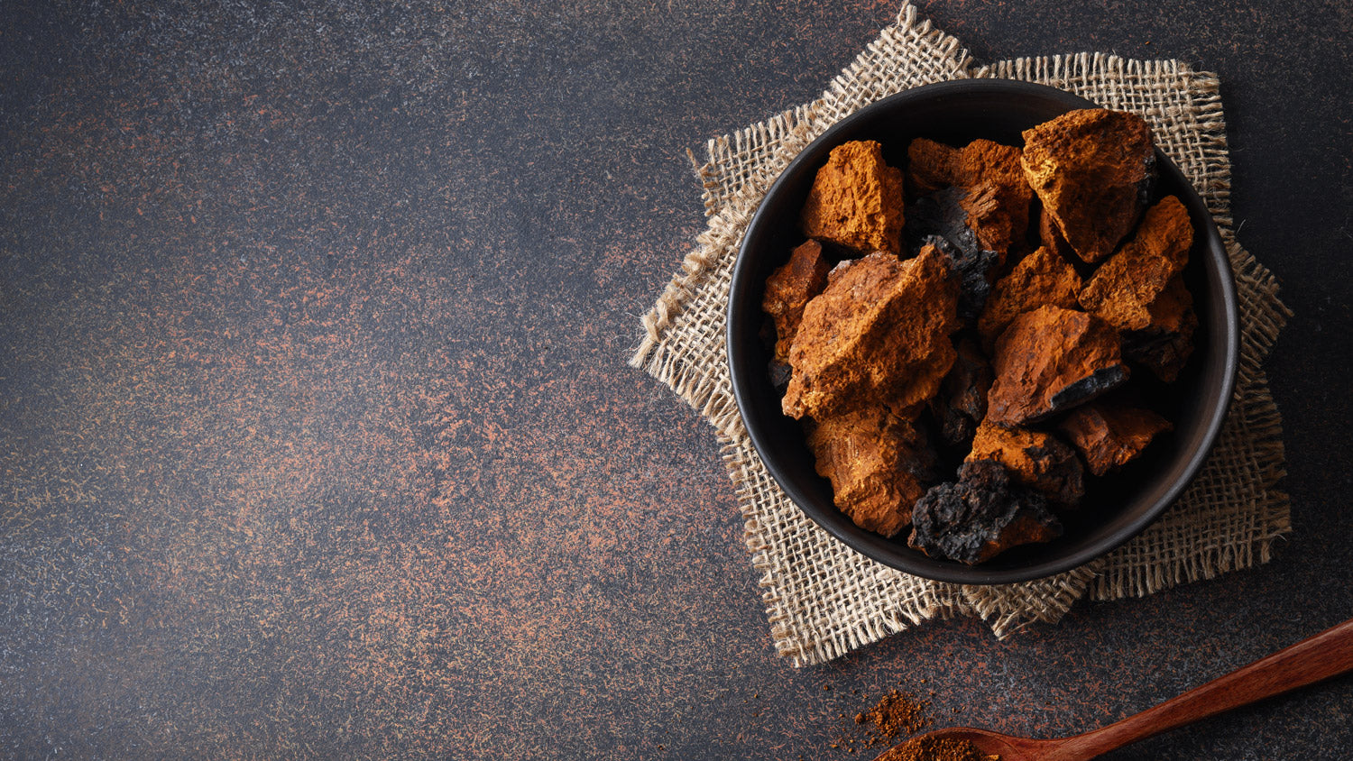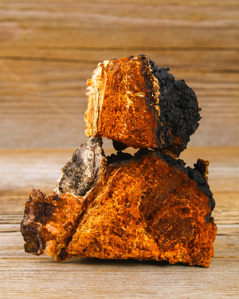 Le chaga est un champignon des environnements froids qui pousse sur les bouleaux et apparaît comme une masse, arrondie à l’allure de bois carbonisé. Il est consommé depuis des millénaires et considéré comme l’un des champignons médicinaux les plus riches en nutriment, des propriétés connues par les premiers peuples. Sa valeur nutritionnelle très élevée aurait entre autres la capacité de contribuer à régulariser le système digestif, l’hypertension, et de supporter le système immunitaire. Le chaga est surtout consommé pour sa forte teneur en antioxydants et pour ses propriétés antitumorales que la science commence à reconnaître.